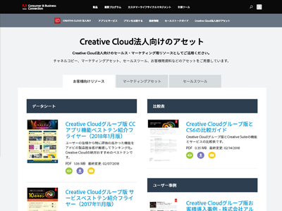 貴社での販促ツール作成に便利なマーケティングアセット、お客様への提案時に役立つセールストーク集など、お客様向けのアセットを製品ごとに提供しています。